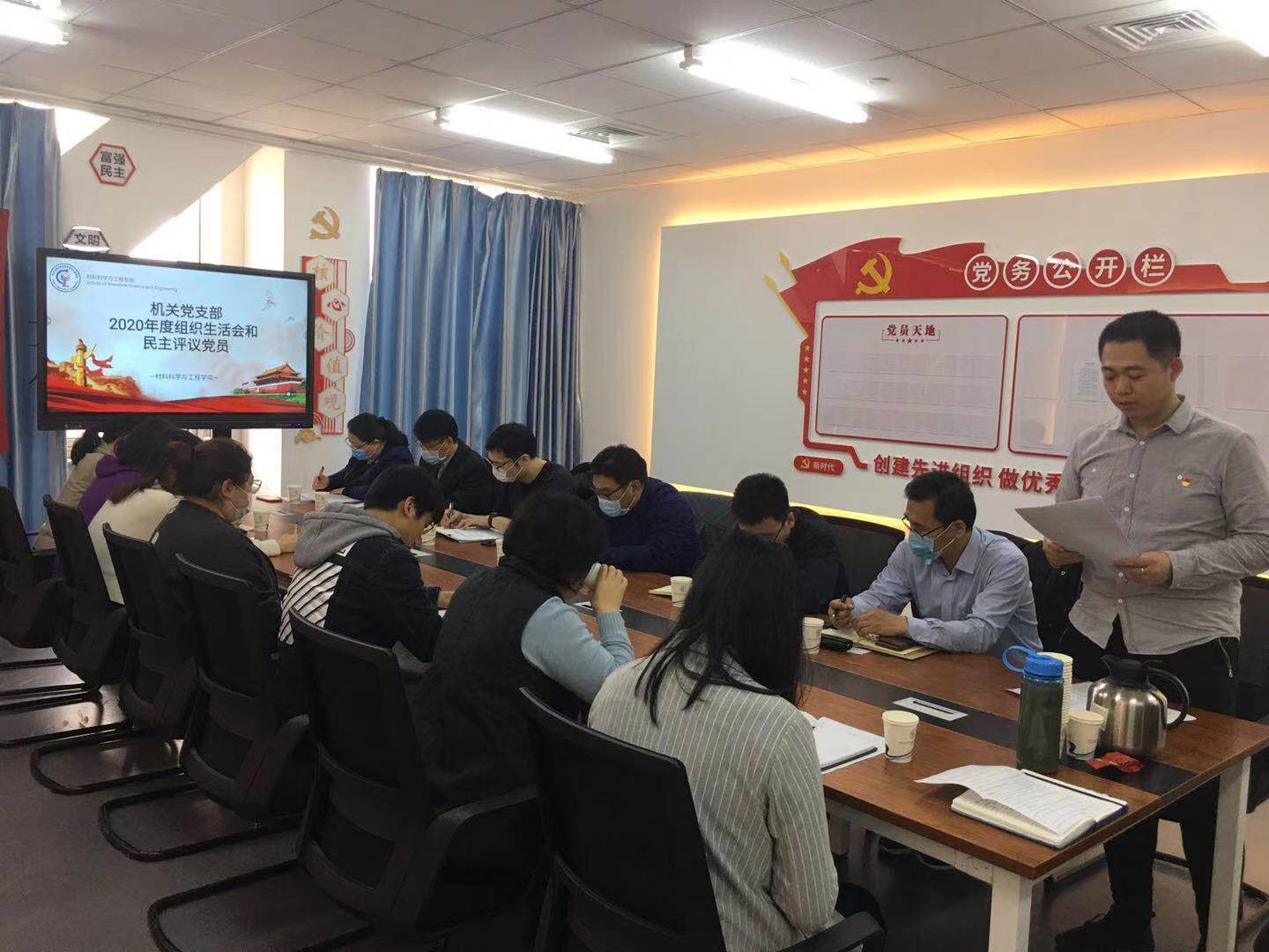 为深入学习贯彻习近平新时代中国特色社会主义思想和党的十九届五中全会精神,巩固深化“不忘初心、牢记使命”主题教育成果,提升基层党组织政治功能和组织力,教育引导广大党员增强“四个意识”、坚定“四个自信”、做到“两个维护”,根据党章和《中国共产党支部工作条例(试行)》、《中国共产党党员教育管理工作条例》等规定,按照《中共中央组织部关于召开2020年度基层党组织组织生活会和开展民主评议党员几个问题的通知》、《中共天津市委组织部关于召开2020年度基层党组织组织生活会和开展民主评议党员的通知》要求,材料科学与工程学院党委机关党支部于2021年3月15日,在学院535会议室组织召开2020年度组织生活会和开展民主评议党员,机关党支部党员参会,材料学院党委纪检委员董艳春、校党委组织部正处级组织员赵其波和中共天津市委教育工委组织部崔帅列席指导会议。