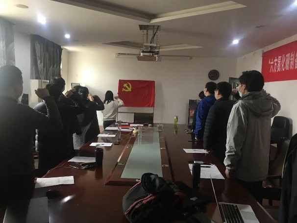 会前,全体党员佩戴党徽,由党支部书记林靖带领全体党员面向党旗庄严宣誓。党支部书记林靖代表支部委员会向党员大会述职,报告近一年来党支部工作开展情况,从政治理论学习、支部建设、疫情防控、落实意识形态工作情况、持续深化爱国主义教育情况以及针对上年度查摆问题整改落实等方面对支部2020年度工作进行了全面的总结汇报,并请党员进行评议。随后支部书记、支部委员以及全体党员依次开展了批评与自我批评,深刻剖析自身存在的问题,提出了今后的改进措施和努力方向。最后,支部还组织全体党员开展了民主评议党员工作。