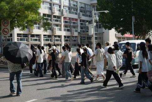 7日上午,夏令营组织新生开展校园导览活动。工作人员详细讲解了教室分布、图书馆预约、食堂、体育场馆及快递点等实用信息,帮助大家更快适应校园环境。