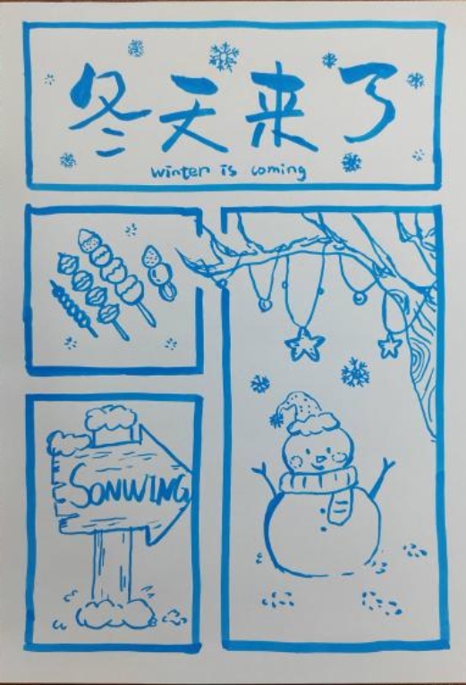 同学们的创作中充满了创意和情感,有的描绘了银装素裹的校园,雪花纷飞,树枝挂满雪凇,仿佛整个世界都被纯净的白色所覆盖;有的则通过镂空设计巧妙地展现了冬日里校园图书馆的美丽场景,又或是用彩色扭扭棒编制出惟妙惟肖的雪花。每一幅画作都蕴含着作者独特的视角和情感,让同学们在欣赏的过程中感受到了冬日的多样魅力。