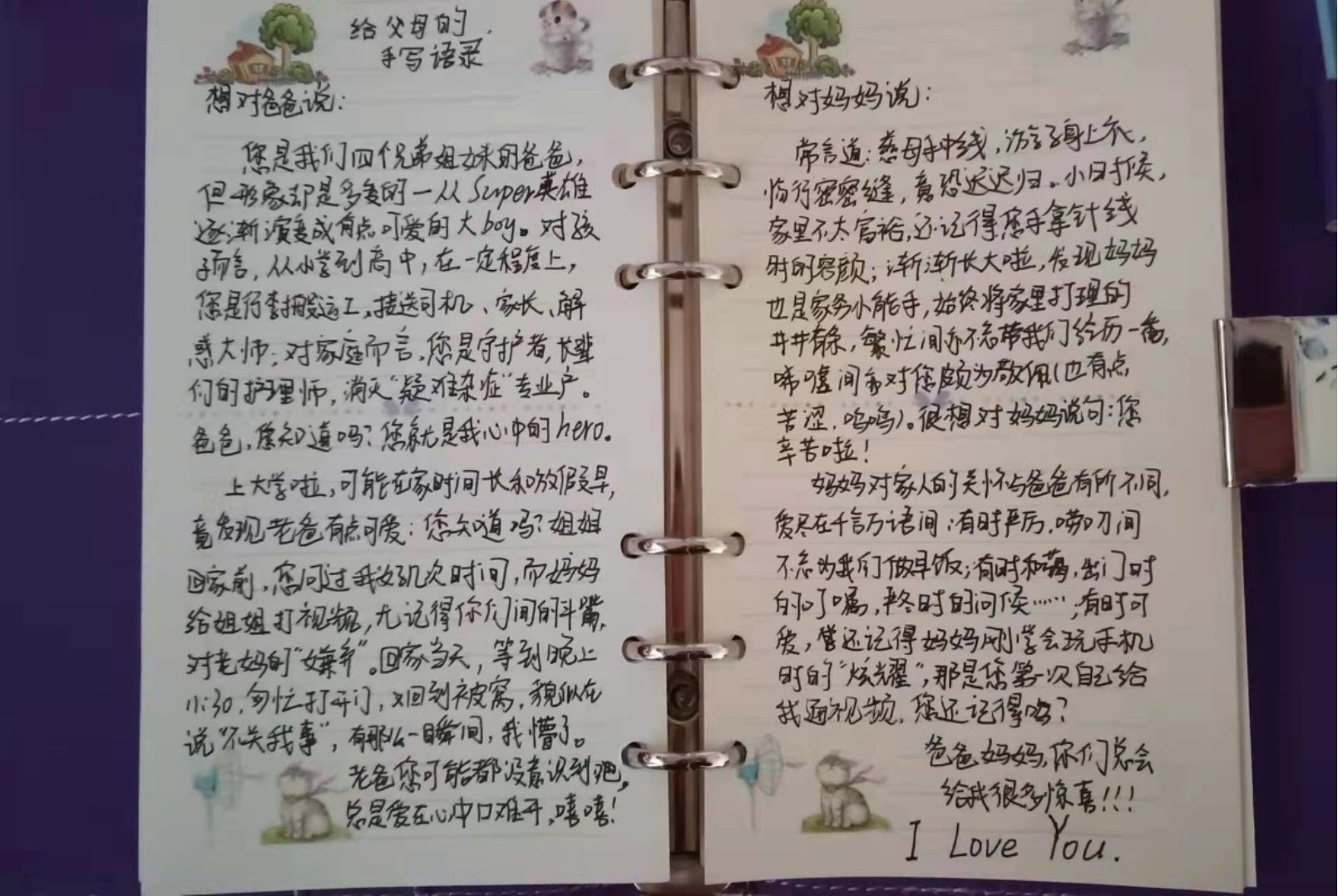 为进一步加强我院大学生心理健康教育工作,全面推进kaiyun体育官网登录入口材料科学与工程学院大学生思想建设,更好地培养高素质应用型人才,引导大学生关爱自己、关心他人、感恩生活。值此2022年寒假期间,我支部举办了“我爱我心”大学生心理健康节暨公共管理系感恩父母活动。同学们积极参加本次活动,以多种方式展现了对父母的爱。