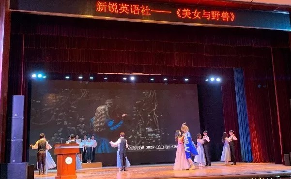 现场展示环节中,新锐英语社社长吴鑫雨介绍了这一年中精彩的活动,例如,中英书法大赛。并展示了英语口语的魅力,上演了《美女与野兽》的精彩表演,让我们见识到新锐英语社的魅力。