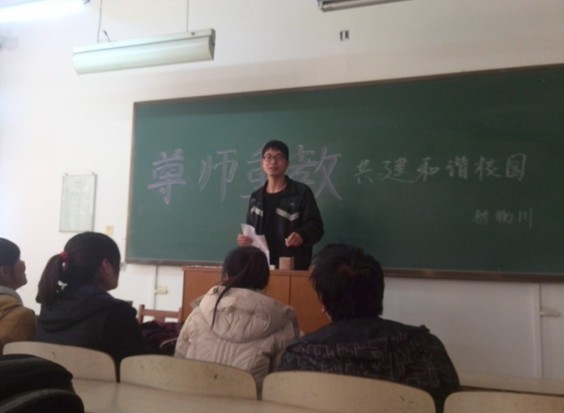 为了响应学校团委号召,2013年11月,材料科学与工程学院2011级8个班的团支部开展了以“尊师重教,共建和谐校园”为主题的团日活动。活动中同学们积极主动的开展了形式多样的活动。