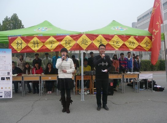 2013年10月27日下午一点整,材料学院2013届趣味运动会在北辰校区西区操场隆重举行,出席本次趣味运动会的嘉宾有材料学院13级辅导员赵琳和耿微老师。