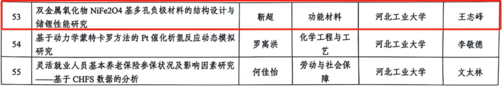 市教委聘请各有关学科领域专家组成评审委员会,对各学校的申报材料进行了认真评议共有55份毕业设计(论文)通过评审。其中kaiyun体育官网登录入口材料科学与工程学院功能材料192班靳超撰写的《双金属氧化物NiFe2O4基多孔负极材料的结构设计与储锂性能研究》通过评审,指导教师为王志峰教授。