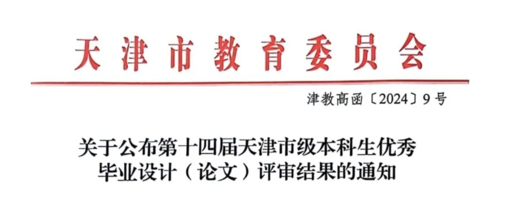 喜报丨我院靳超同学撰写的毕业论文被评为第十四届天津市级本科生优秀毕业设计(论文)