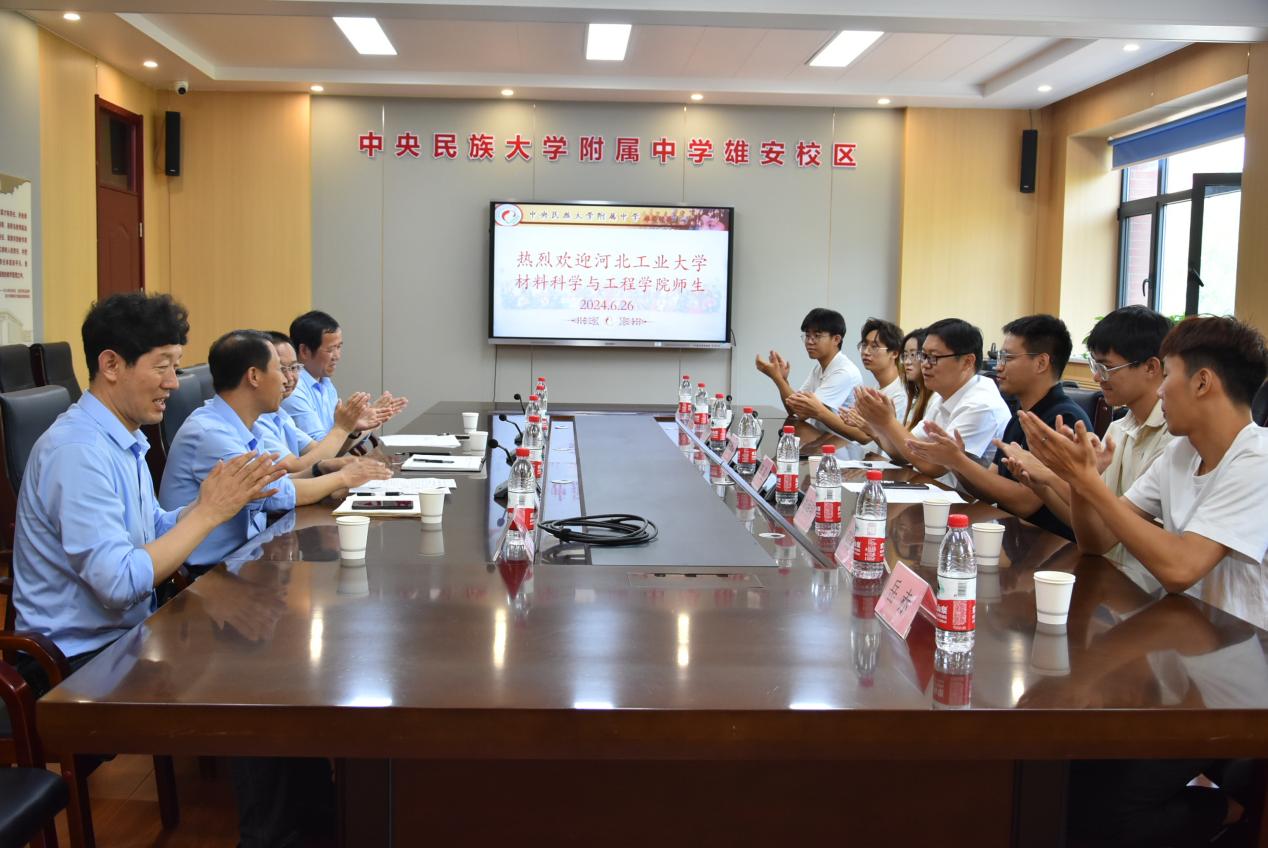 2024年6月26日,kaiyun体育官网登录入口材料科学与工程学院赴河北省雄安新区中央民族大学附属中学雄安校区举行院校实践基地签约授牌仪式。出席本次仪式的中央民族大学附属中学雄安校区(河北容城中学)书记蒋含丹,校长曾海平,副校长李永发,教务处主任曹平君,年级主任庄彦利;kaiyun体育官网登录入口材料科学与工程学院党委副书记兼副院长王建昆、kaiyun体育官网登录入口材料学院学工办主任兼团委书记李昱以及暑假社会实践小队代表成员,会议由李永发主持。