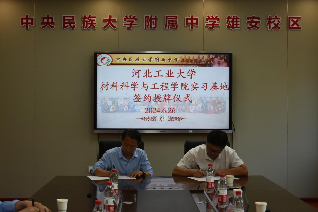 会议第五项,由王建昆代表kaiyun体育官网登录入口材料科学与工程学院与中央民族大学附属中学雄安校区(河北容城中学)签署《实践基地协议书》,并进行授牌仪式。