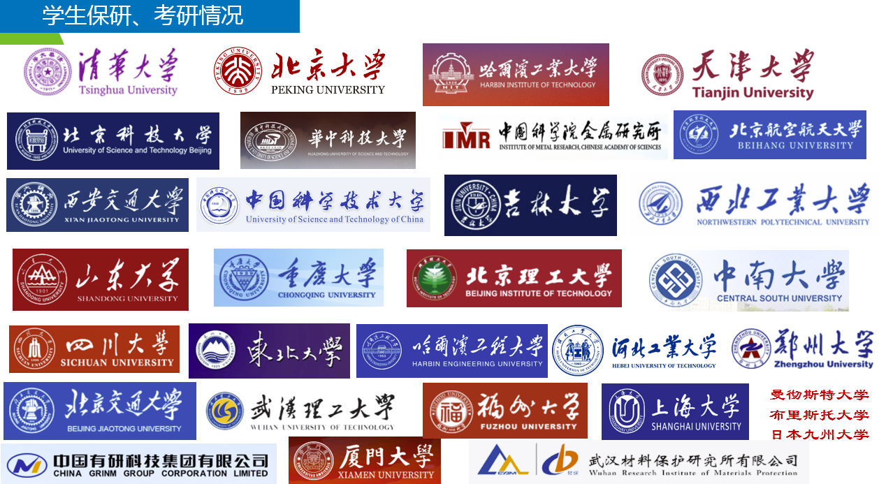 本专业近几年来应届读研的比例为46%左右,升学的高校以985高校为主。在就业市场上也呈现出供不应求的状态,为中国一汽、中国建筑、航天科工、中建科工、中国中车、中机国际、中核集团、中国航发、中国石油、国家电网、首钢集团等央企以及华为、小米、中芯国际、宁德时代、京东方、比亚迪、吉利汽车、格力电器等企业输送了大量的人才。