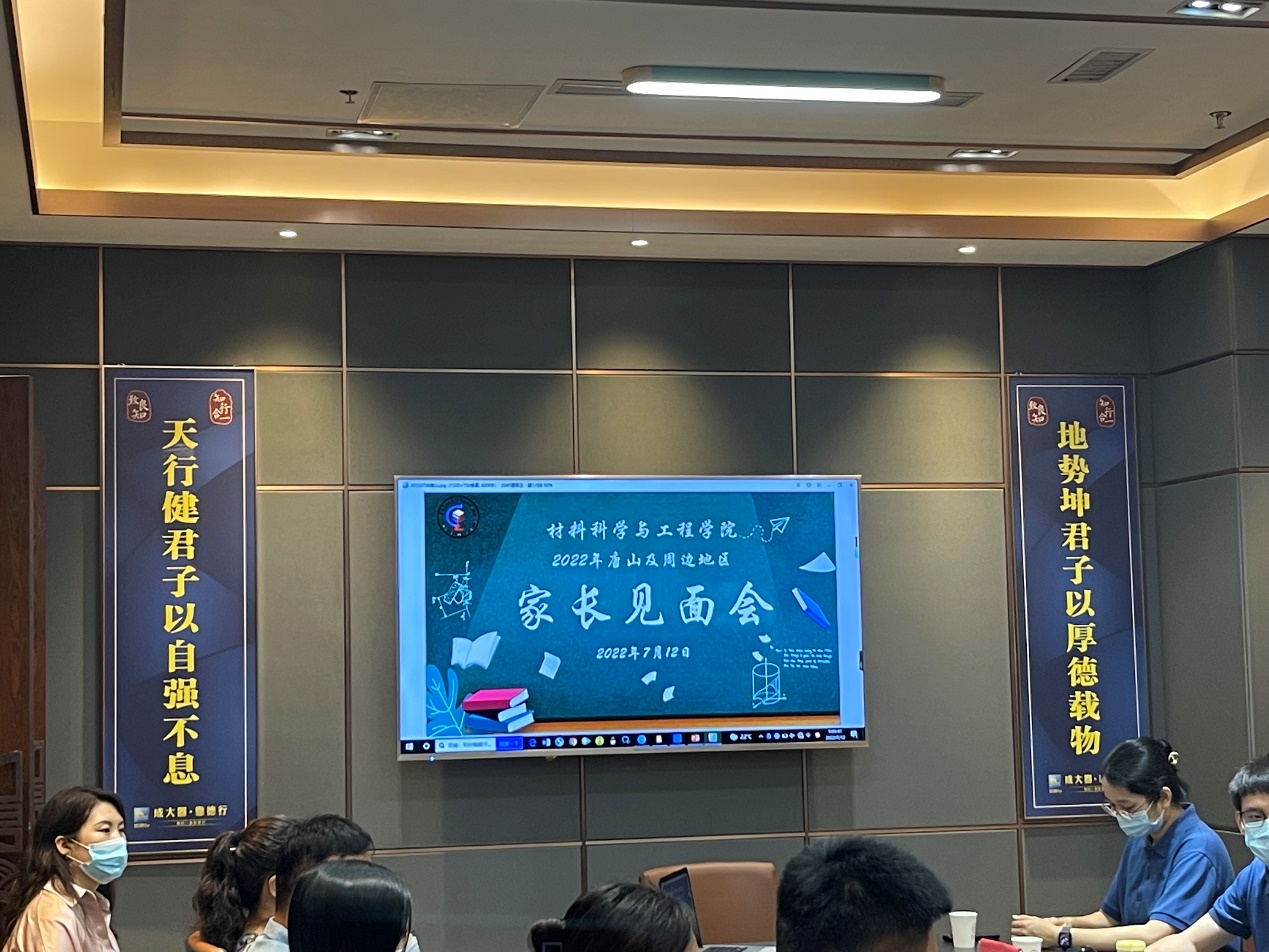 为了加强疫情常态化和学校封闭管理期间的家校联系,增强家校互动,协同育人成效,更好的服务学生,材料科学与工程学院于2022年7月12日上午9点在河北省唐山市举办了唐山及周边家长见面交流会。材料学院党委副书记王建昆,团委书记许海媚,辅导员李昱、贺荟文、刘曌、吕颖,博士后周鹏飞老师,同时参会的30余名唐山及周边同学的家长。