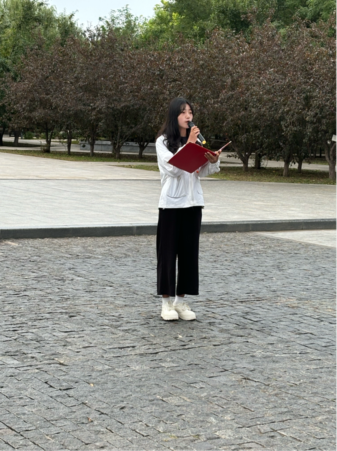 其次,学生代表刘方晗进行发言,他说到我们要努力成为三个人:一个自律的人,一个勇敢的人,一个对社会有用的人,怀揣着挑战无限未知的勇气在未来的学习生活中不断提升个人综合素质,成长为德智体美劳全面发展的新时代青年大学生
