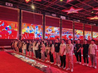 在讲解员引领下,师生党员步入气势恢宏、象征长征精神的“时空隧道”,见证从中国共产党成立至今新中国的诞生、发展、一路前行的光辉历程。随后在张雪莹老师的带领下,所有师生面向党旗、高举右拳,在毛主席雕像前庄严宣誓,重温入党誓词,共忆入党初心。