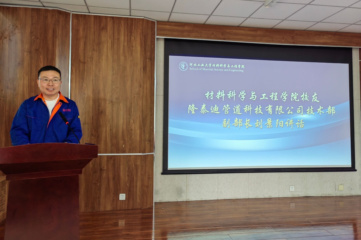 4月19日,沧州隆泰迪管道科技有限公司董事长王春建、董事会秘书兼董事长助理张大鹏、副总经理杨连河、销售经理张恩会、技术部副部长刘景阳、办公室副主任马骏一行六人来到材料科学与工程学院进行交流访问。材料科学与工程学院党委书记赵庚、院长郑士建、正处级辅导员张雪莹、副院长杨勇、青年教师沈春光和姚凯参与了此次会谈。