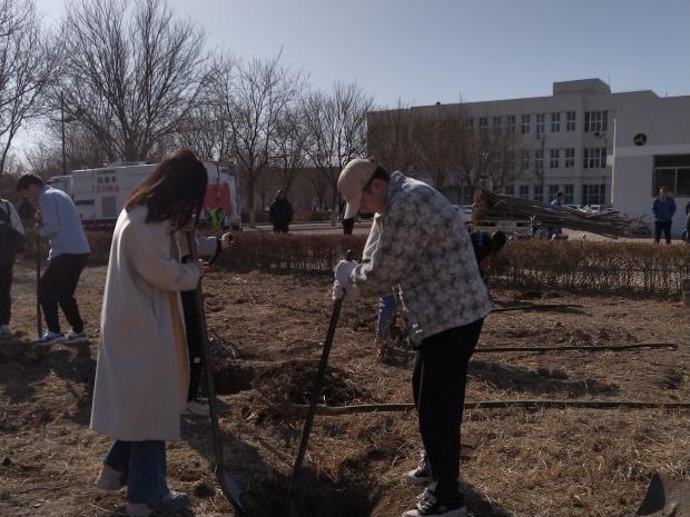 3月19日午,学院志愿者在指导老师的带领下手持铁锹共同植树。他们三五成群、默契配合、干劲十足,挖坑、栽树、培土、浇水,每一个环节都一丝不苟,他们以实际行动诠释着志愿精神,为社区增添了一抹生机勃勃的绿色他们种下的不仅仅是树苗,更是对美好环境的向往和对学校的热爱。