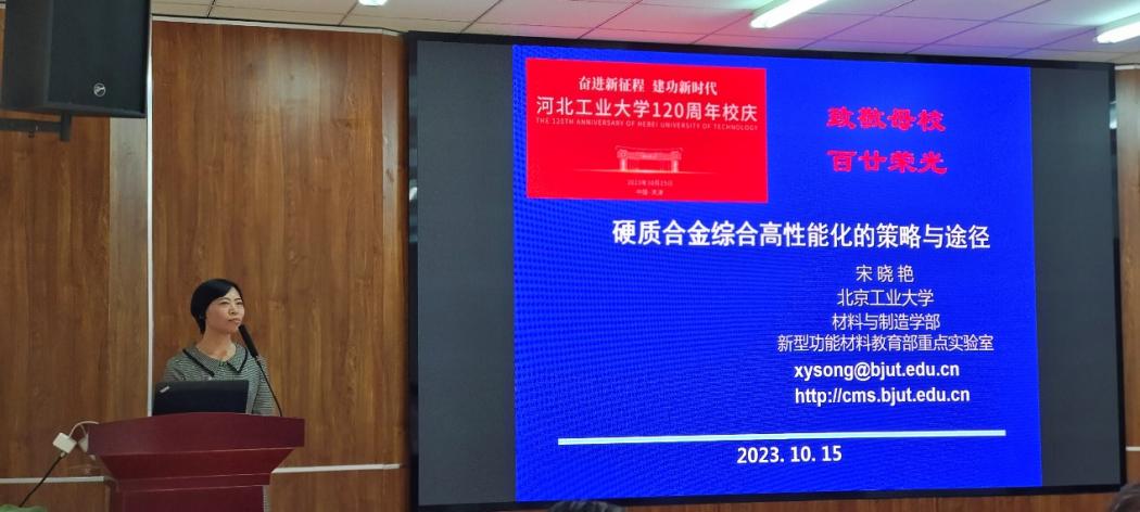 宋晓艳作了题为《硬质合金综合高性能化的策略与途径》的报告。宋晓艳是我校金属材料热处理专业92届校友,她回顾了自己在母校的求学历程,深情地祝福了百廿工大。介绍了自己的研究方向和研究方法。宋晓艳主要研究基于纳米组织稳定性调控的合金结构材料。她通过建立模型、提出机制、开发技术的研究思路,研究了硬质合金中的基元系统。她和团队在这些理论创新的指导下,成功实现了许多高性能硬质合金的产业化与应用的创新。