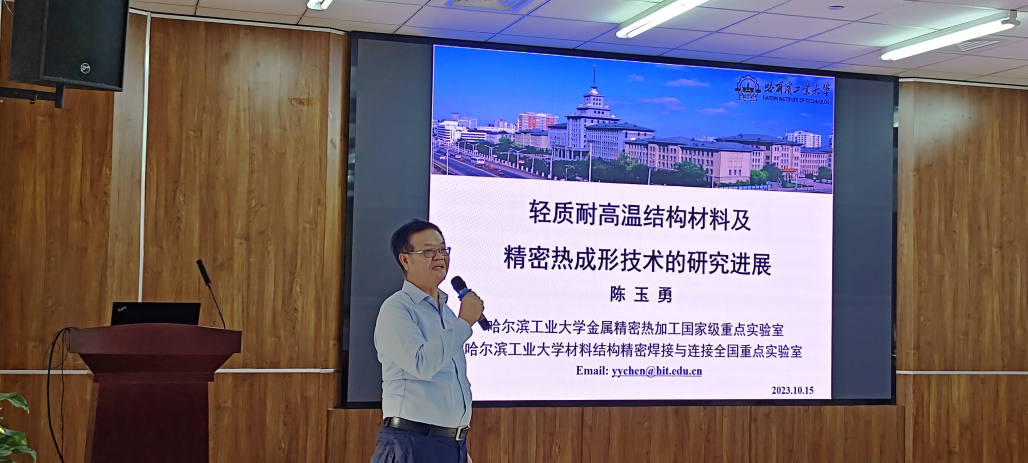陈玉勇作了题为《轻质耐高温结构材料及精密热成型技术的研究进展》的报告。陈玉勇指出,提升航空发动机性能指标-推重比,让结构件更轻、更耐高温是国家重大战略需求。通过介绍高马赫数飞行器对TiAl材料的需求,以及国内外在相关技术上的差距,深刻揭示了其研究内容。陈玉勇用近年来真切的实验,生动阐述了其团队的奋斗历程。