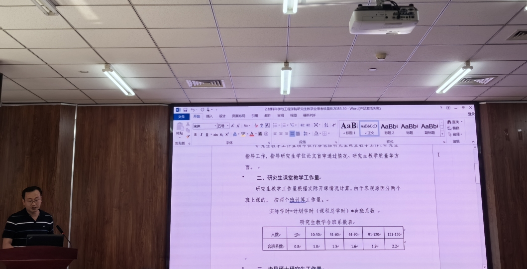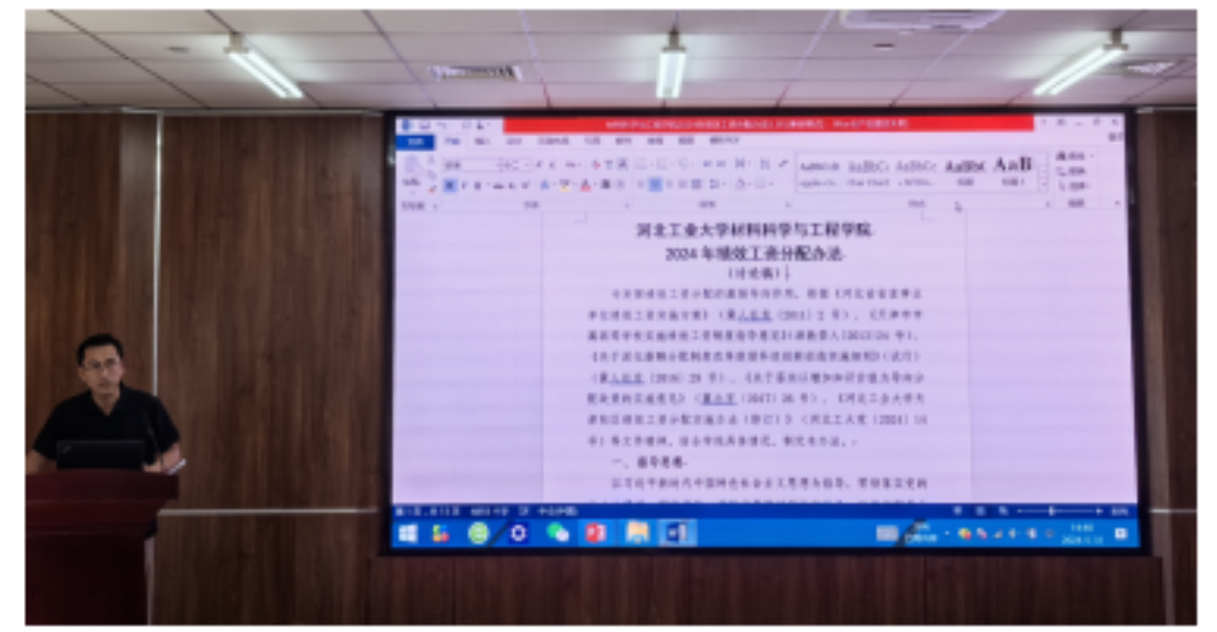 会上学院副院长夏兴川、院聘副院长董斌、本科生教务王宇红分别对《材料科学与工程学院研究生教学业绩考核量化方法(讨论稿)