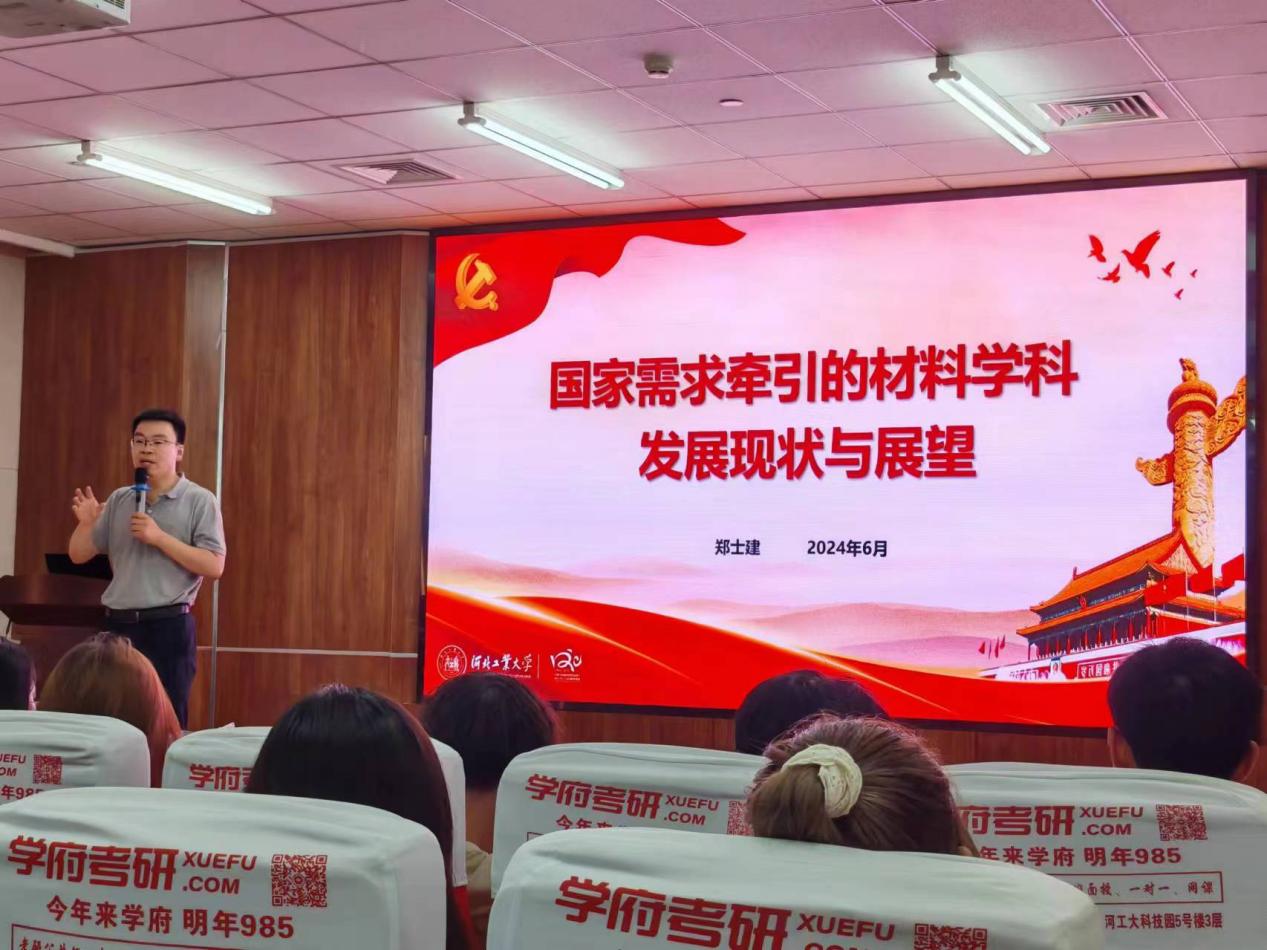 2024年6月14日晚,材料科学与工程学院2023-2024年春季学期党课培训第八讲在机材楼514开展。本次党课以“国家需求牵引的材料学科发展现状与展望”为主题,由郑士建院长担任主讲人,学院积极分子百余人参会。