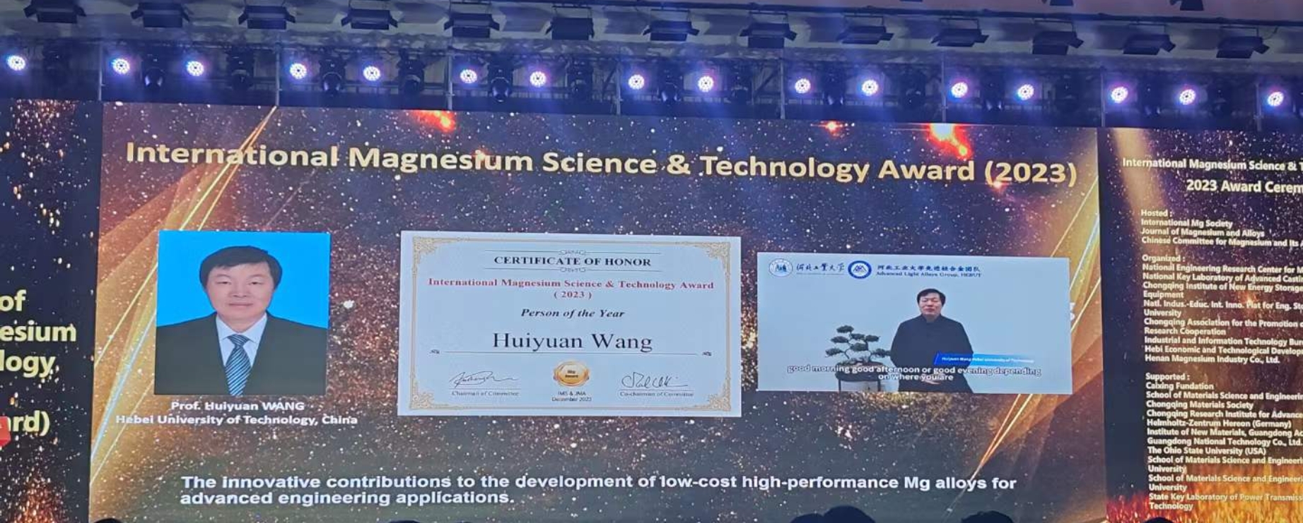 2023年12月10日-12日,由国际镁学会(International Mg Society)和镁合金学报(Journal of Magnesium and Alloys)共同主办的“2023年度国际镁科学技术奖颁奖典礼暨《镁合金学报(英文)》创刊十周年前沿论坛”在河南省鹤壁市召开。我院先进轻合金团队负责人王慧远教授获得国际镁科学技术奖年度人物奖。获得该奖项的还有美国加州大学圣巴巴拉分校机械工程学院Irene J. Beyerlein教授、德国亥姆霍兹Hereon研究中心表面科学研究所所长、德国基尔大学Mikhail Zheludkevich教授和山东科技大学曾荣昌教授。