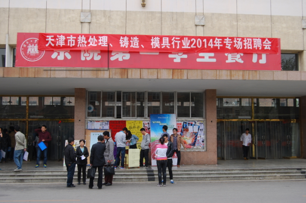 为了进一步促进我校大学生就业工作,拓展就业机会,提高就业质量,搭建用人单位与毕业生互相了解的桥梁,加强学校学院与行业的密切联系,材料科学与工程学院广开思路、多方联系,于4月10日下午2:00在东院第一学生餐厅成功举办“天津市热处理、铸造、模具行业2014年专场招聘会”。