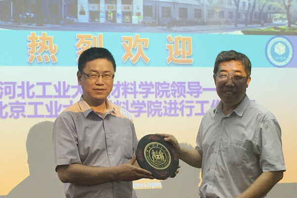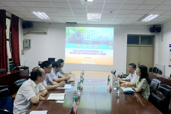 贯彻落实京津冀三所工大协同创新联盟工作,推动北京工业大学材料学院与我院的协同工作,材料学院领导班子积极采取行动。7月16日,材料科学与工程学院党委书记陈洪建教授、院长唐成春教授带领院领导班子等一行五人前往北京工业大学材料学院就学院之间的全方位合作事项进行交流座谈。北京工业大学材料学院党委书记雷永平教授、院长王金淑教授等热情接待了陈洪建书记一行。