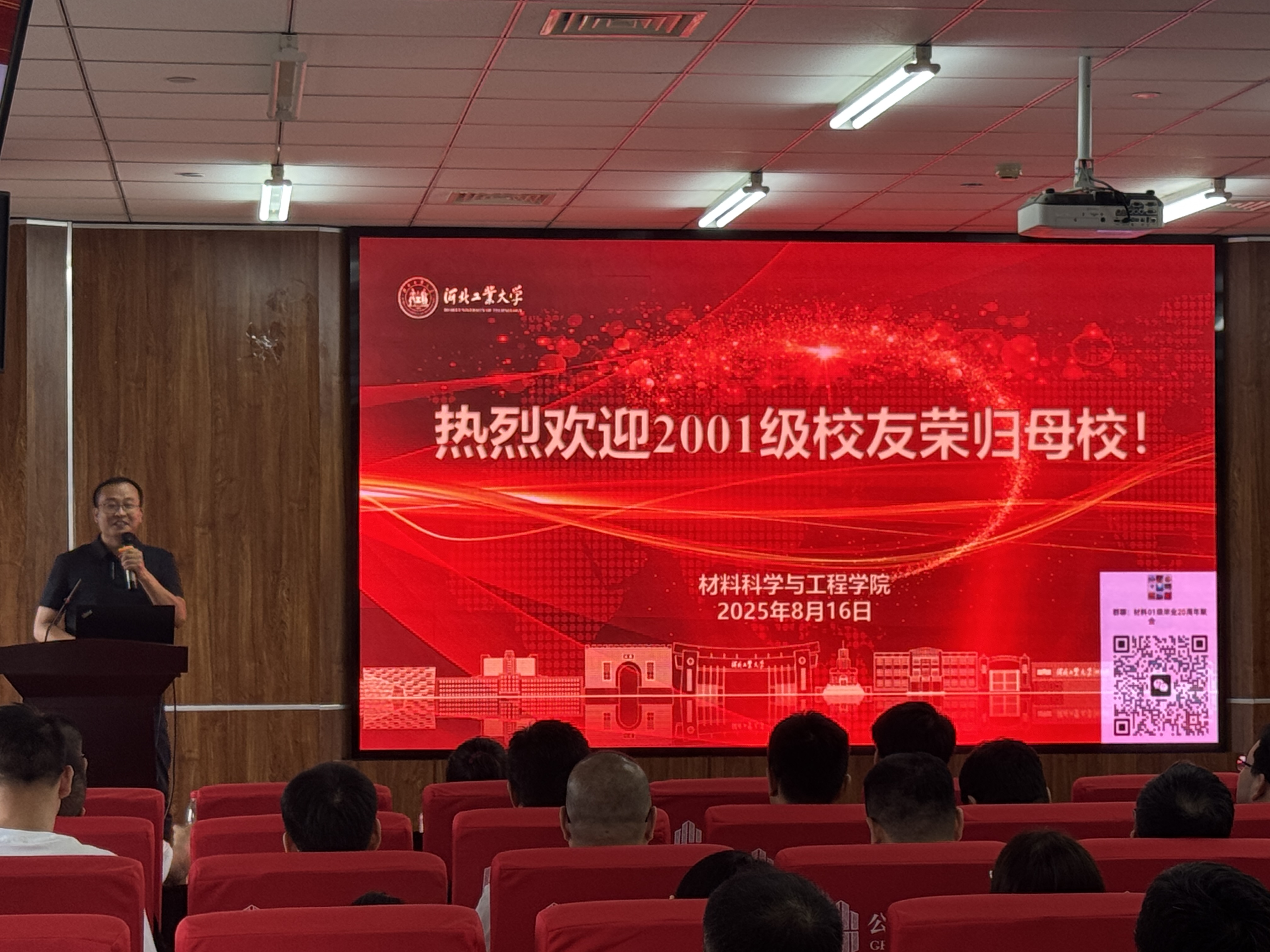 8月16日,材料学院2001级60余名校友从各地重返母校,共庆毕业二十周年。学院正处级辅导员张雪莹、校人事处副处长王志坤(曾任2001级学生辅导员)、学院副院长夏兴川(同为材料012班校友)出席了本次盛会。