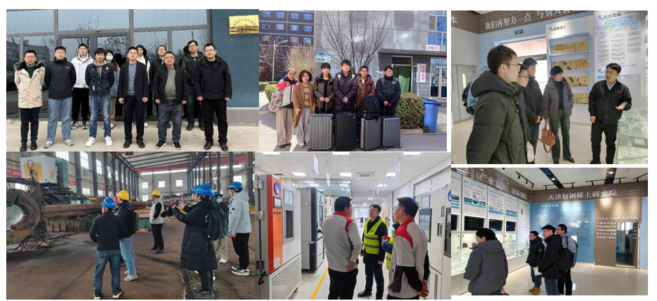金属材料工程系教师王新、杨薇、苗斌、沈春光、姚凯先进材料分析中心教师赵彦明和无机非金属材料工程系教师刘何燕护送多名毕业设计同学,分别来到石家庄河北冠靶科技有限公司、保定曼德电气沧州隆泰迪管道科技有限公司和天津包钢稀土研究院有限公司等企业。师生受到公司的热情接待,通过座谈与企业导师就课题基本情况、实验开展计划、就餐和住宿安排以及工作条件等进行了充分交流,随后一同参观了企业生产现场对毕设课题要解决的问题进行进一步深入探讨