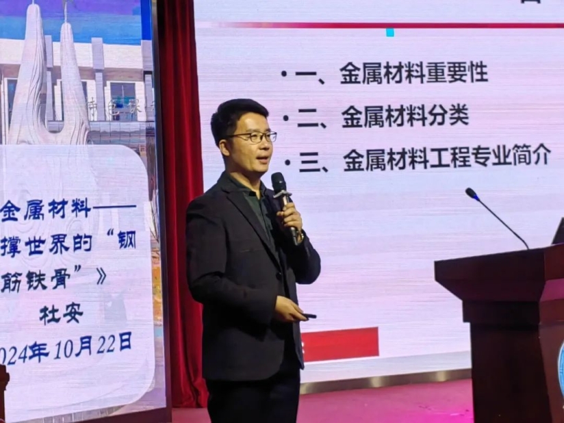 kaiyun体育官网登录入口材料科学与工程学院杜安教授走进kaiyun体育官网登录入口附属红桥中学仁和大讲堂,为广大师生带来了《金属材料——支撑世界的钢筋铁骨》的精彩讲座。kaiyun体育官网登录入口附属红桥中学党委书记孙鸿毅、副校长孙琳、部分中层领导、教师及高一年级学生参加了本次活动。本次活动由高一年级组长张惠主持。