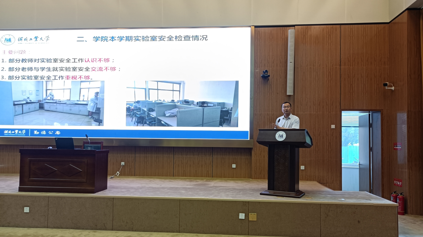 首先,夏兴川副院长介绍了学校本学期实验室安全事故情况,学院本学期实验室安全检查情况,以及实验室安全分类分级管理工作,指出了当前部分教师在实验室安全工作上存在的主要问题,并提出改进要求。