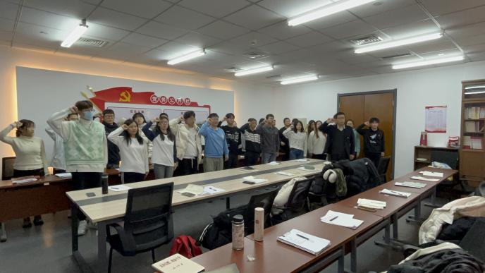 培训第二项,由支部书记为全体预备党员佩戴党徽,勉励预备党员牢记初心使命,勇于担当作为,无愧于胸前闪亮的党员徽章,无愧于心中坚定的信仰。随后由赵庚同志带领预备党员共同宣誓,铮铮誓言,拳拳红心,铿锵有力的宣誓声响彻会场,预备党员们坚毅的眼神彰显着对党的忠诚,表达着对党作出的庄严承诺。