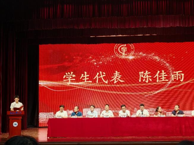 学生代表材物201班陈佳雨发言回忆了大学四年的难忘生活,表达了对老师们的感激之情并对所有毕业生送上了鼓励与祝福。